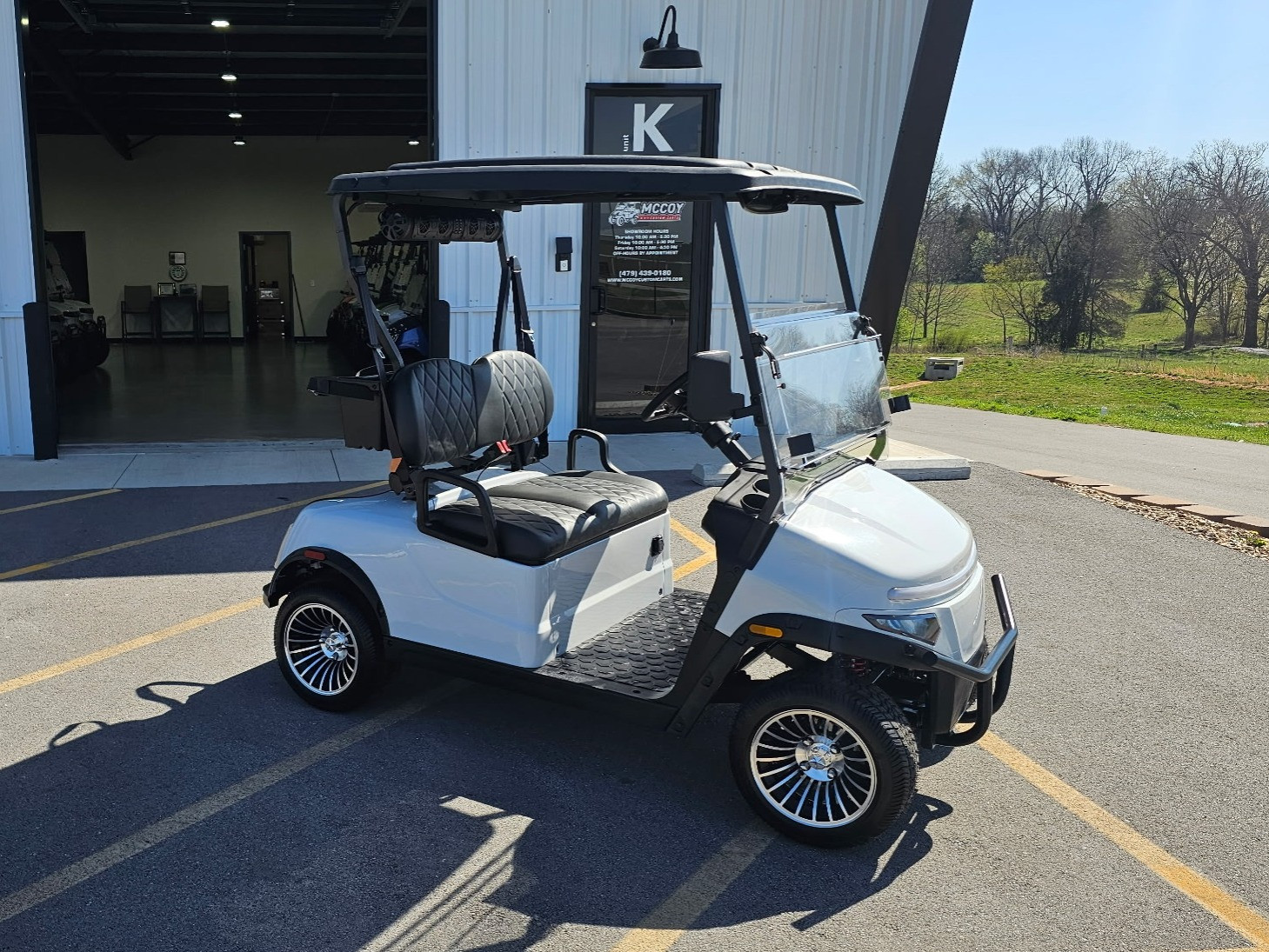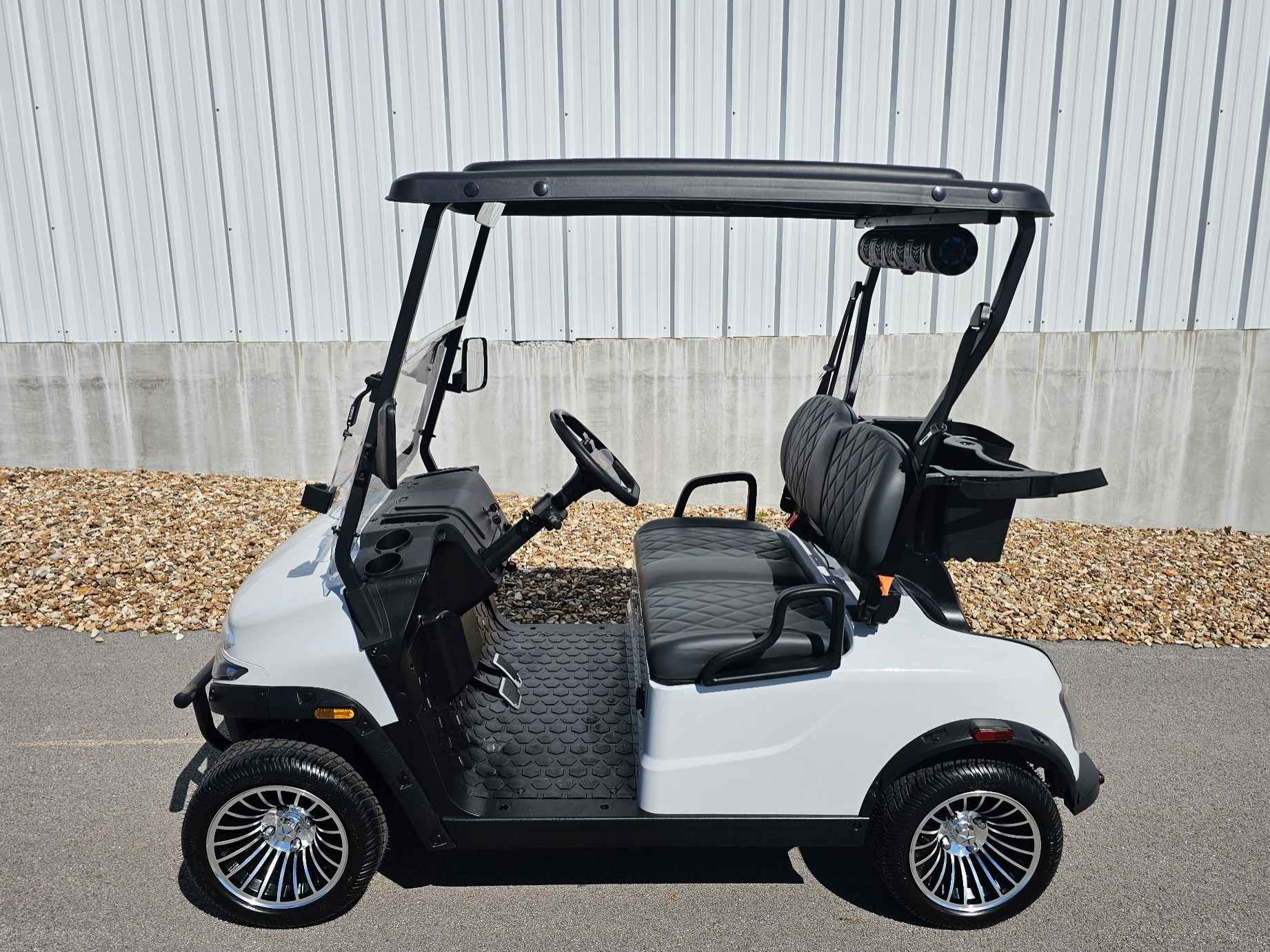 Headlights, Taillights, Brake Lights, Turn Signals, and HornCushioned Seats – GrayFold-Down WindshieldBagwell with Golf Bag HoldersRearview and Sideview MirrorsBrush GuardShort Canopy Top – BlackDigital State-of-Charge/MPH GaugeSeat BeltsUSB & USB-C Charge Ports225/35 Turf Tires with 12 Alloy WheelsCupholders